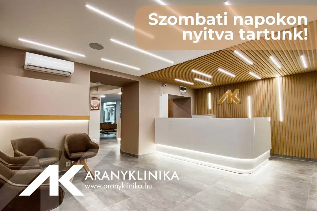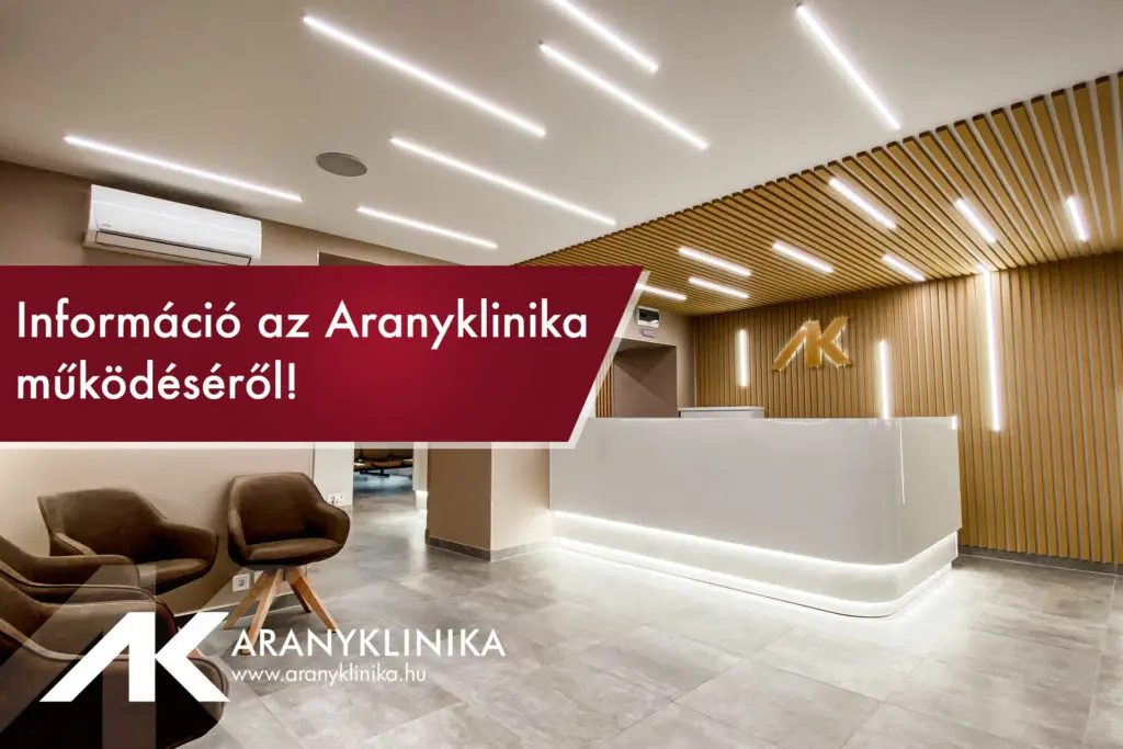 Tájékoztatjuk minden kedves Páciensünket, hogy 2024.08.03-án (szombaton) az Aranyklinika zárva tart. Telefonos ügyfélszolgálatunk 08-14 óra között elérhető lesz időpont egyeztetés céljából.